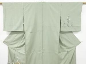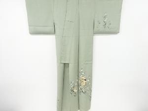 田尾笛秋作 蓑虫 鏡裏に花模様縦節紬訪問着