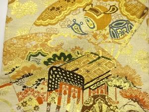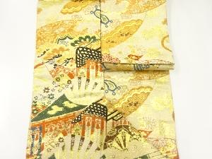 アンティーク 扇に御所車・宝尽くし模様織出し名古屋帯(着用可)