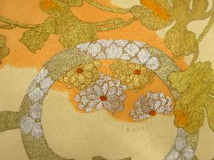 アンティーク 絞り 万寿菊に竹模様刺繍丸帯(材料)