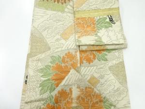 アンティーク 扇に鶴・花模様織出し名古屋帯(材料)