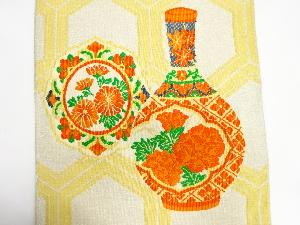 アンティーク 綴れ 壺に絵皿・亀甲模様織り出し名古屋帯