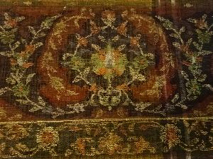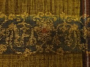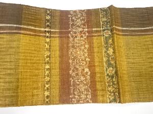 渡文謹製 横段に花唐草模様織出し袋帯
