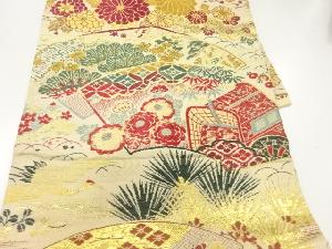 アンティーク 地紙に松菊・御所車模様織出し名古屋帯(材料)