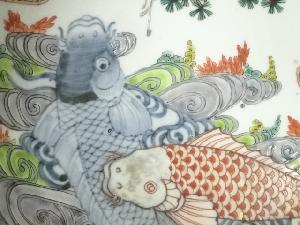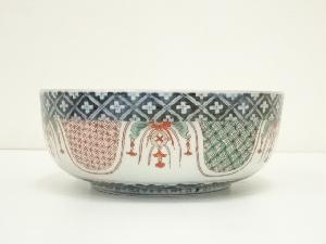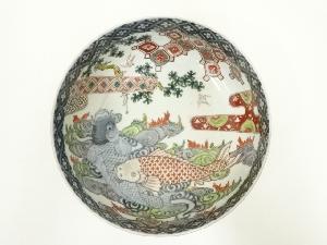 江戸中期 古伊万里 色絵双鯉文鉢(共箱)