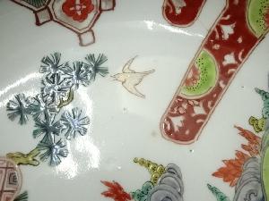 本焼した陶磁器のうわぐすりの上に赤,緑,黄などの絵具で上絵付けをし、低い火度で焼き付ける装飾技法。