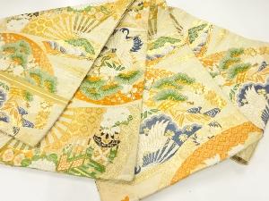 アンティーク 扇に鶴・松竹梅模様織出し丸帯(材料)