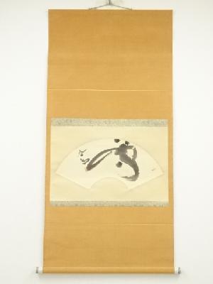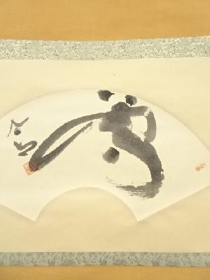 東大寺 清水公照筆 一字 扇面 肉筆紙本掛軸(共箱)