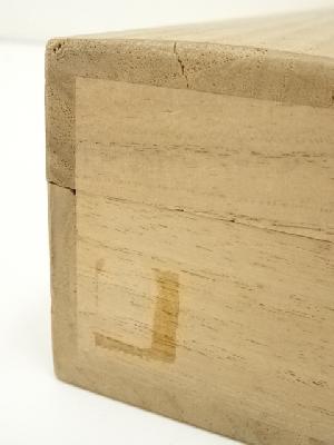 木箱側面にテープ跡とシールが貼ってあります。
