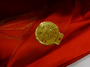 アンティーク 西陣まいづる製 鼓に楓・草花模様織り出し袋帯(着用可)