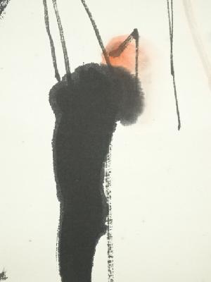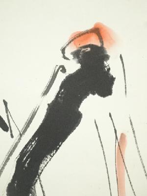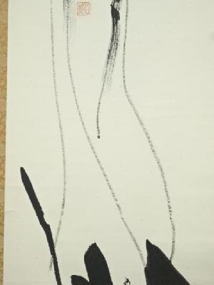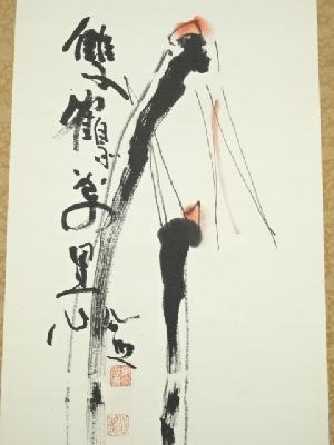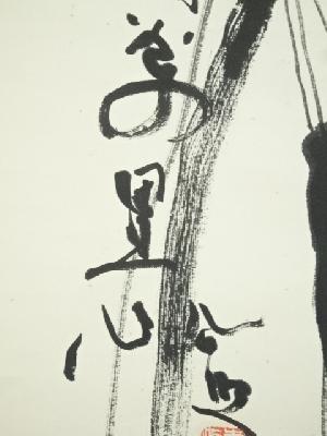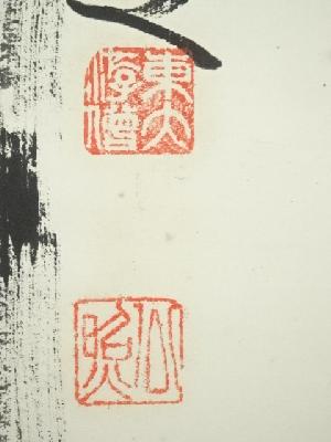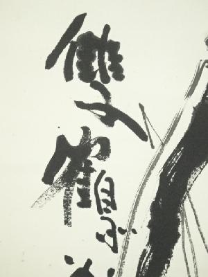東大寺 清水公照筆 「双鶴萬里心」双鶴画賛 肉筆紙本掛軸(共箱)