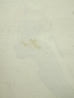 本紙、表具裏、木箱などところどころにごく薄い小さなシミがあります。