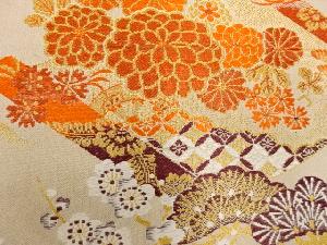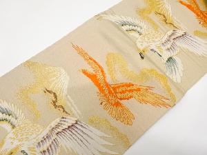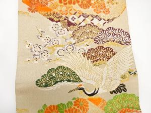 アンティーク 巻絵に鶴・枝梅・菊模様織り出し丸帯(材料)