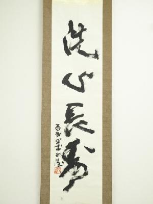 北村西望筆 「洗心長寿」一行書 肉筆紙本掛軸(共箱)