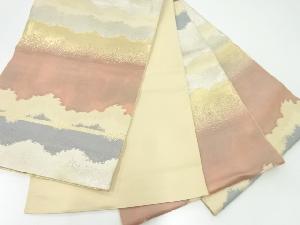 アンティーク 服部織物製 こはく錦横段模様織出し袋帯(材料)