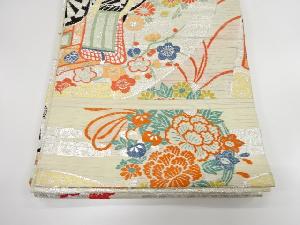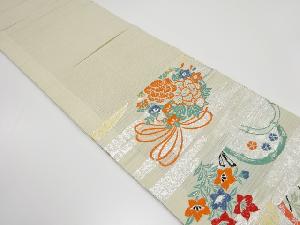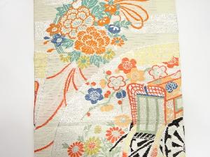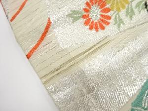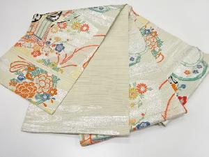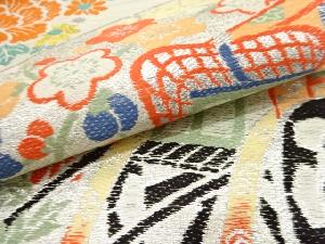 アンティーク 絽地紙に御所車・花薬玉模様織出し丸帯(材料)