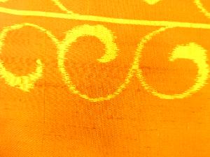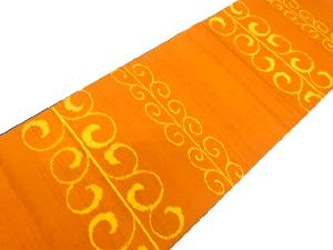 未使用品 手織り紬 唐草模様織り出し 全通袋帯