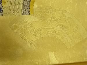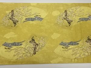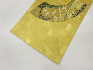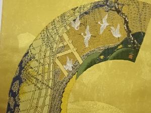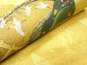 山下織物製 引箔地紙に群鶴・木・橘模様織出し袋帯