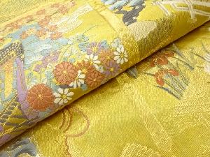 高島織物製 青銅箔屋敷に草花・御所車模様織出し袋帯