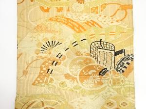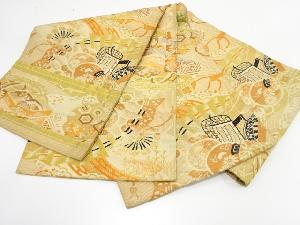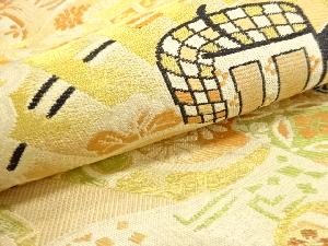 アンティーク 扇に貝桶・御所車模様織り出し丸帯(材料)