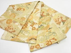 アンティーク 巻物に貝桶・松竹梅模様織り出し丸帯(材料)