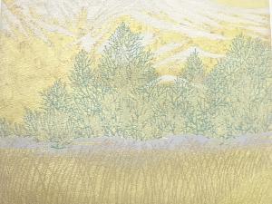 加納織物製 浅間山 山に草木模様織出し袋帯