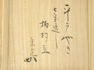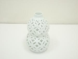 平戸焼 今村悦山造 白磁七宝透瓢杓立(堀内家十二代 宗完 兼中斎書付)(共箱)