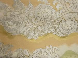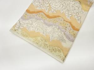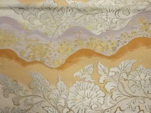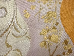 服部織物製 道長取りに花唐草・色紙散らし模様織出し袋帯