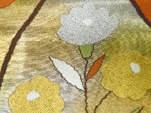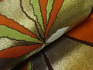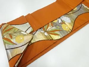 アンティーク 立涌に草花模様織出し名古屋帯(着用可)