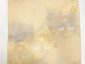 アンティーク 永澤機業製 向かい動物に樹木模様織り出し 名古屋帯地反物