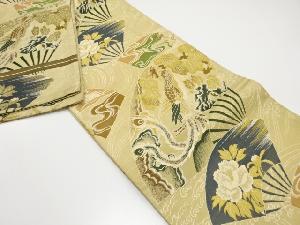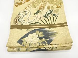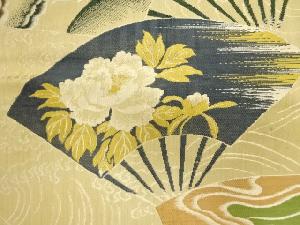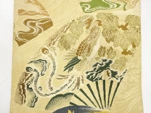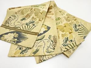 アンティーク 扇に鳳凰・牡丹・蔦の葉模様織り出し丸帯(材料)