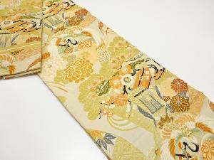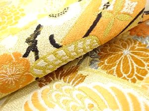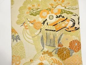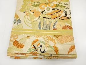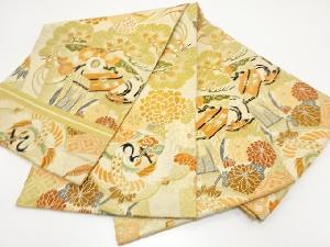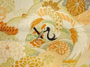 アンティーク 鶴に御所車・笠松模様織り出し丸帯(材料)
