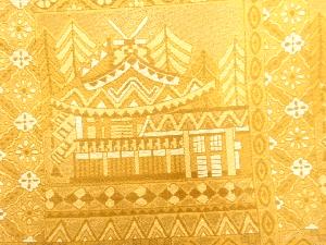 未使用品 天井柄に鳳凰・屋敷模様織り出し 袋帯