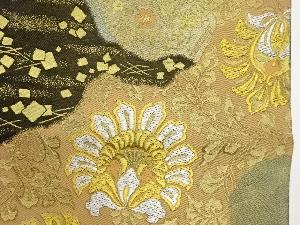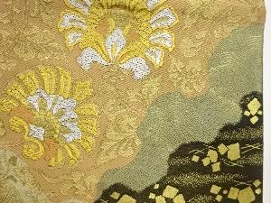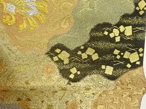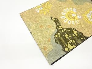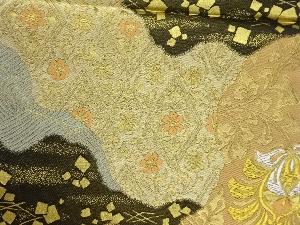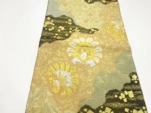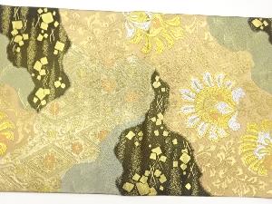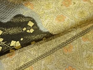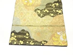 服部織物製 道長取に草花・荒波・色紙散らし模様織出し袋帯