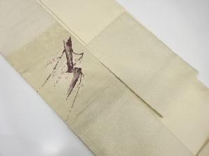 アンティーク 引箔 枝梅に鳥・風景模様織り出し名古屋帯