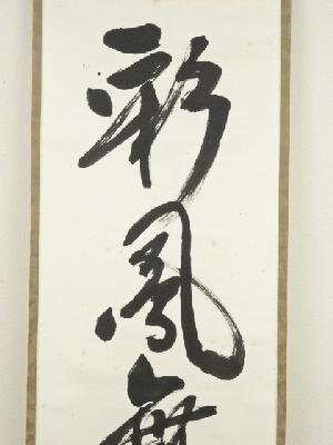 堀内家十二代 宗完 兼中斎筆 「彩鳳舞丹霄」一行書 肉筆紙本掛軸(共箱)