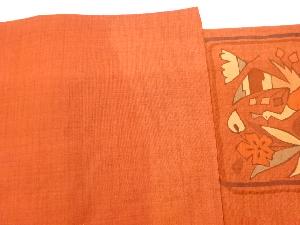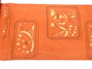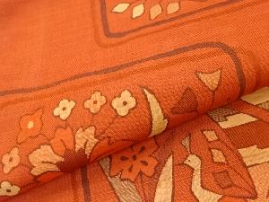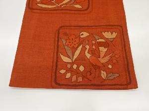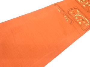 明日香製 色紙に草花・鳥模様織出し洒落袋帯