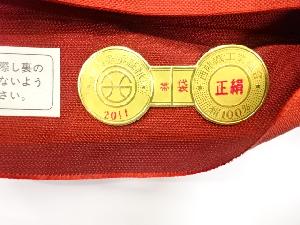 未使用品 今河織物製 市松に田舎風景模様織出し袋帯(未仕立て)