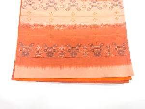 山寅機業製 横段に花更紗模様織出し全通袋帯