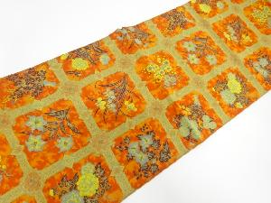 萬葉製 格天井に花模様織り出し全通袋帯