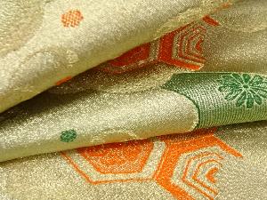 アンティーク 流水に花亀甲模様織り出し 名古屋帯地反物