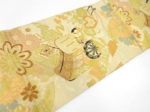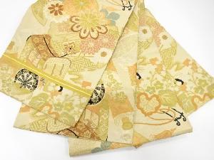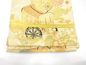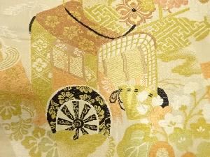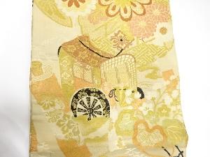 アンティーク 御所車に巻物・花七宝模様織出し丸帯(材料)
