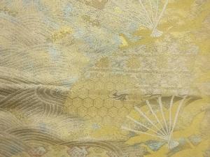 高島織物製 青銅金引箔扇に有栖川文・花唐草・亀甲模様織出し袋帯