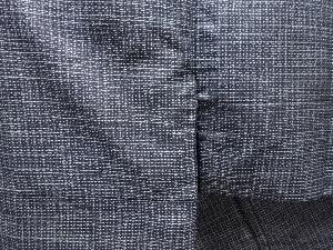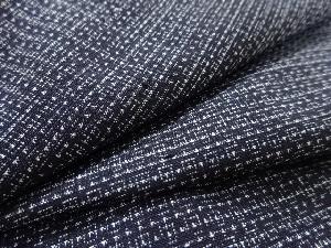 洗練された落ち着きのある色合いで、生地そのものは柔らかく、しわになりにくいと言われている。大島紬の特徴とも言える、織締めと呼ばれる技法で藍を用いて染められた糸を使用している。