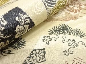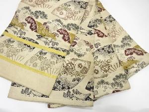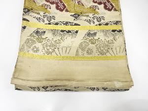 アンティーク 扇に読み本・鶴模様織り出し丸帯(材料)
