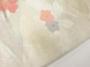 長谷川織物製 引箔金糸変わり菱に山茶花・椿・桔梗模様織出し名古屋帯