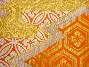 川島織物製 松皮菱に七宝・亀甲・花菱模様織出し袋帯