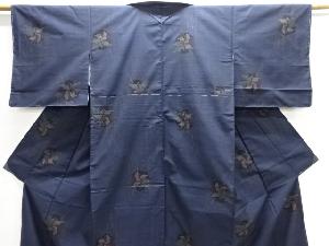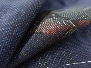 洗練された落ち着きのある色合いで、生地そのものは柔らかく、しわになりにくいと言われている。大島紬の特徴とも言える、織締めと呼ばれる技法で藍を用いて染められた糸を使用している。