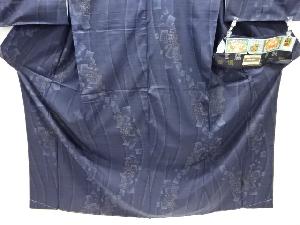 洗練された落ち着きのある色合いで、生地そのものは柔らかく、しわになりにくいと言われている。大島紬の特徴とも言える、織締めと呼ばれる技法で藍を用いて染められた糸を使用している。