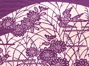 アンティーク 型染 花鳥模様 紬 名古屋帯地反物