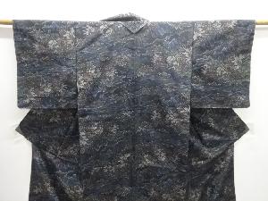 未使用品 家屋に人物風景模様織り出し西陣お召着物
